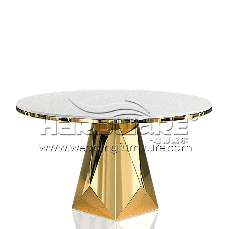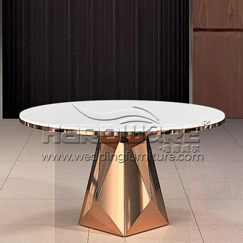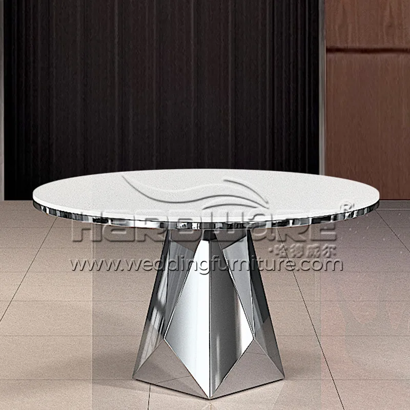 Dining Room Round Table with Stainless Steel Base